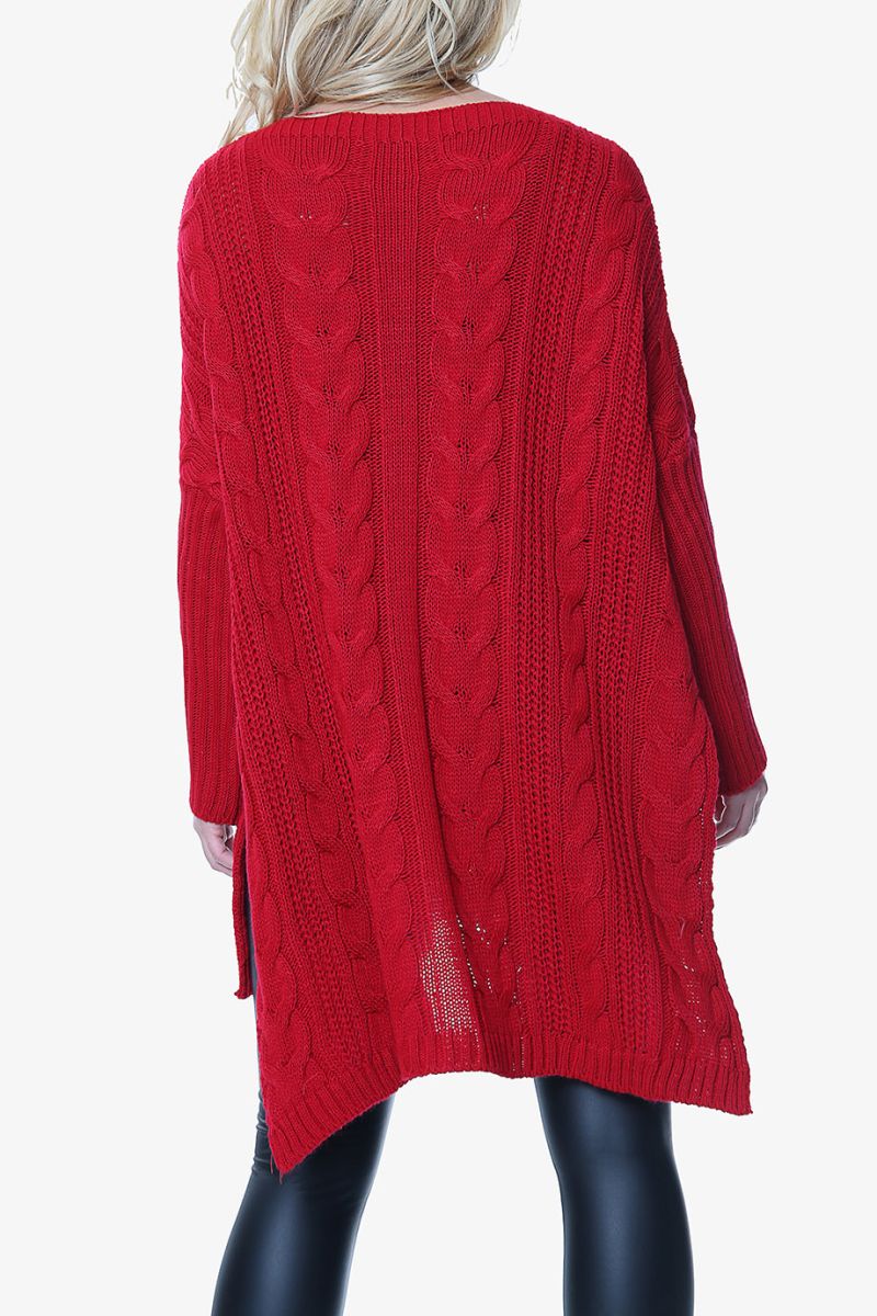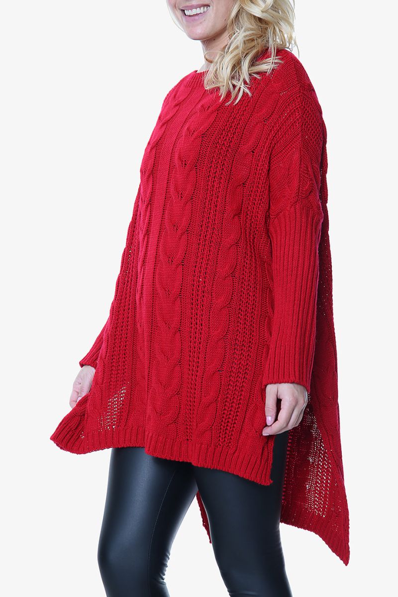 Red High Low Oversized Longline Knitted Jumper