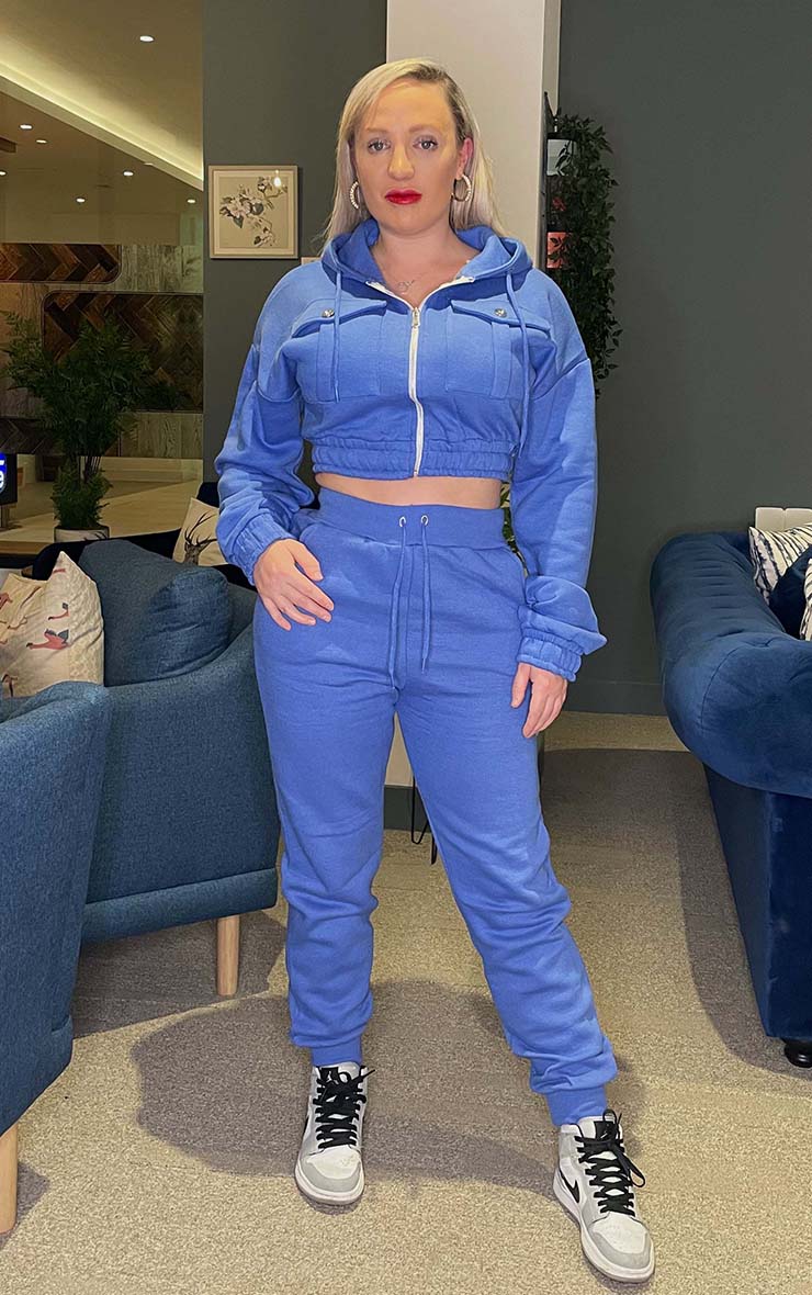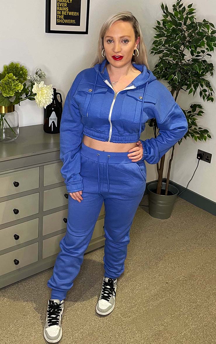 Blue Fleece Crop Zip Hooded Loungewear