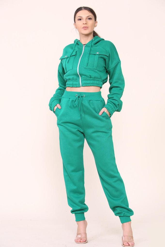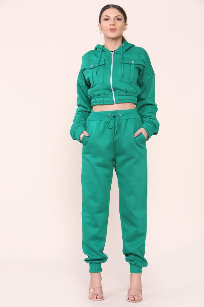 Fleece Crop Zip Hooded Loungewear:
