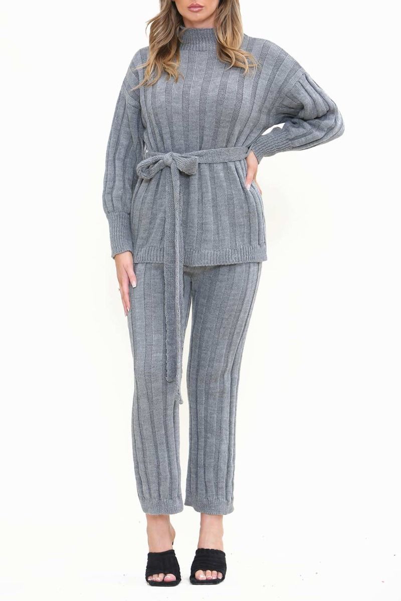 GreyTie Waist Jumper and Trousers Co-ord Set