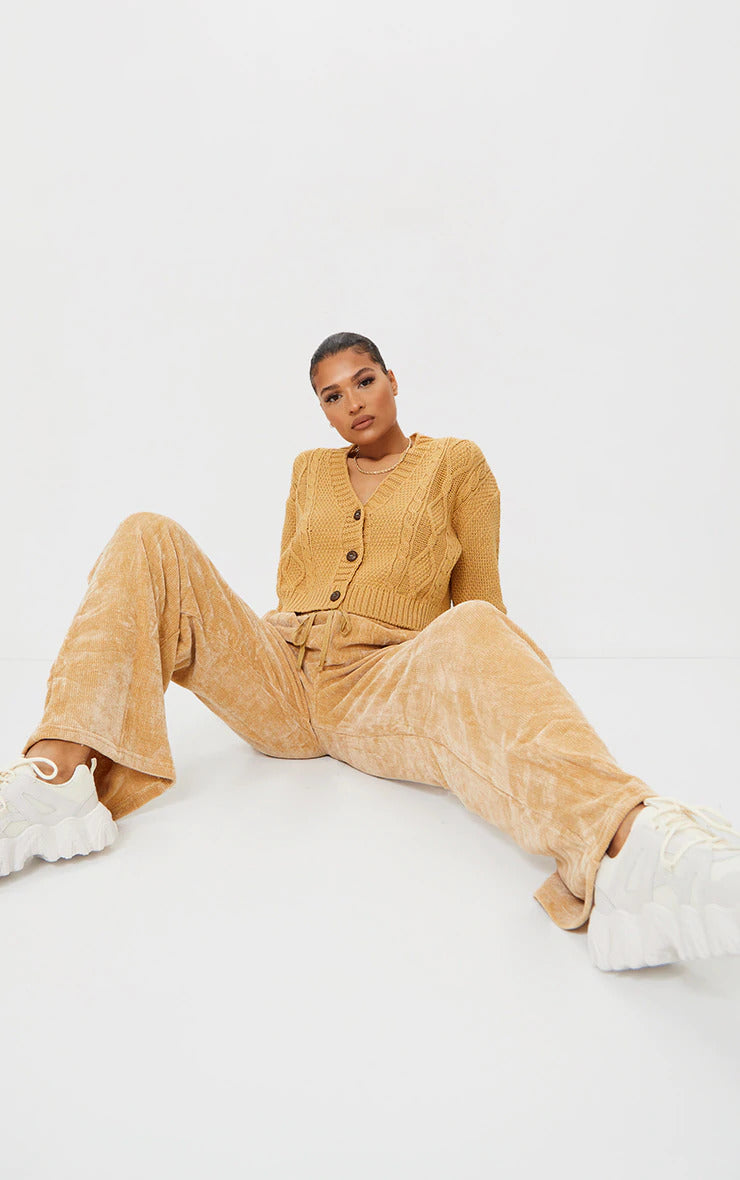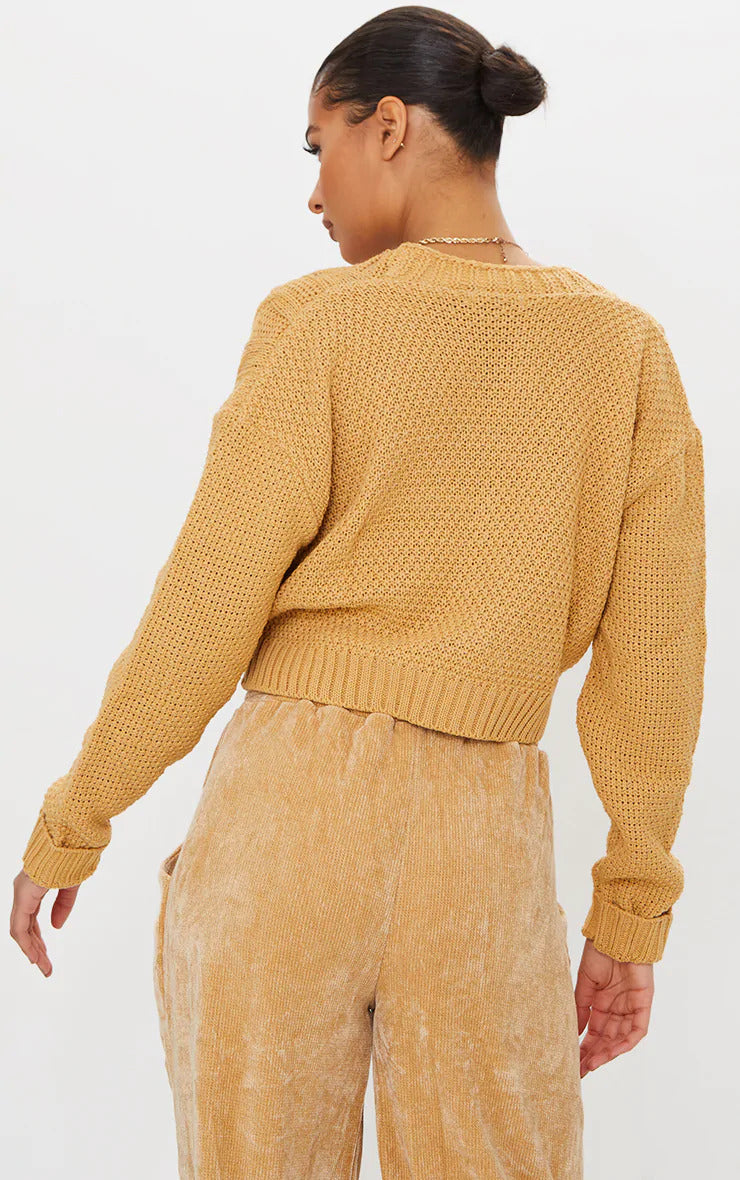 Camel Cable Cropped Cardigan