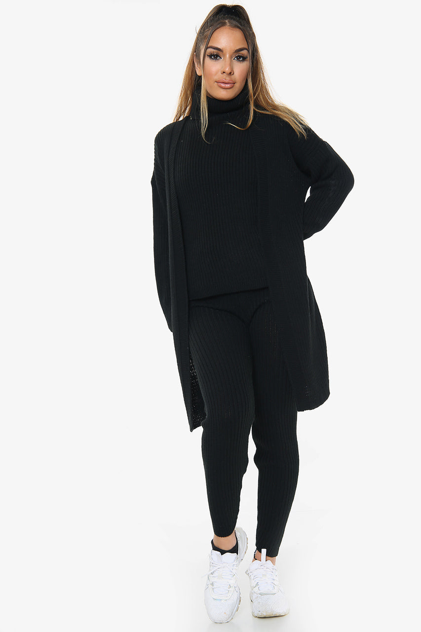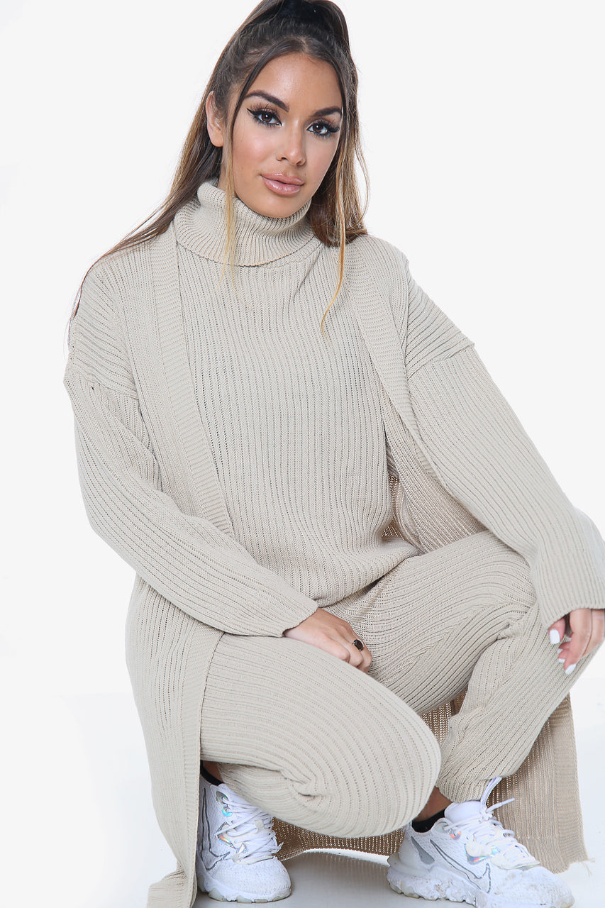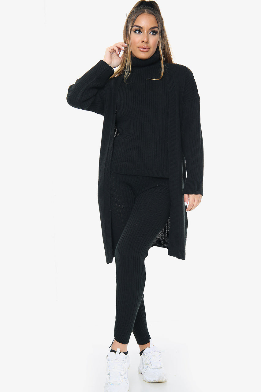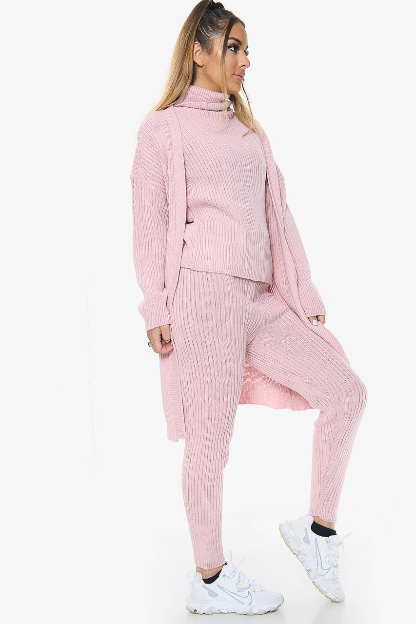 3 Piece Knitted Cardigan Loungewear Set: