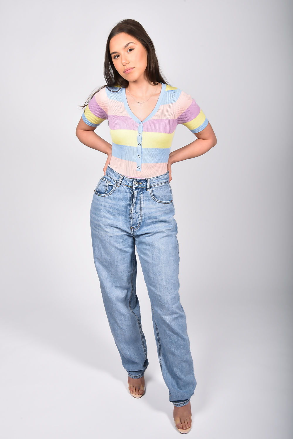Rainbow Stripe Ribbed Button Bodysuit