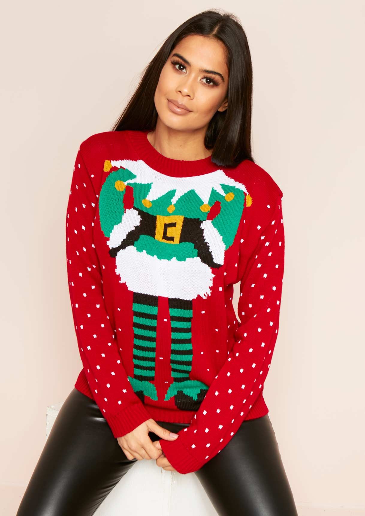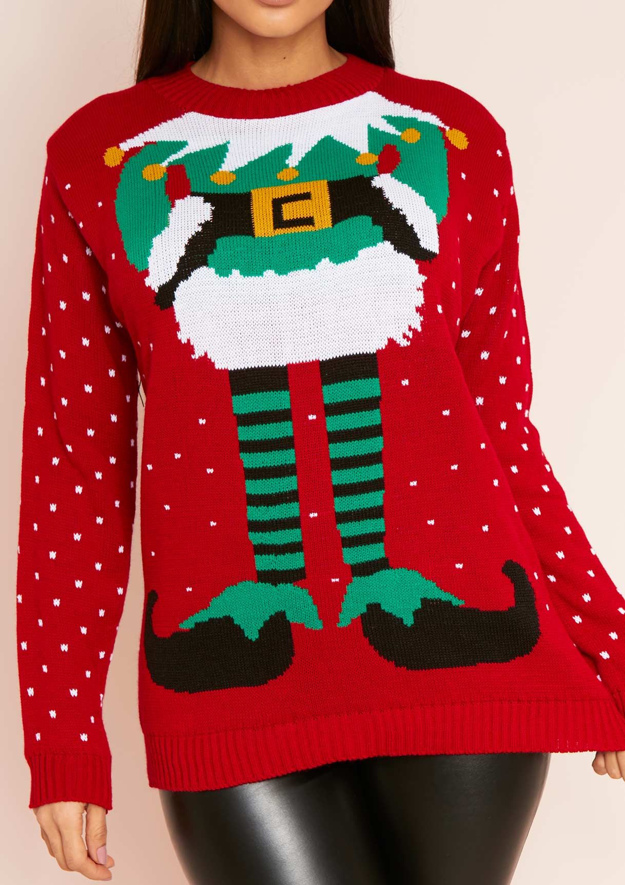 • Load image into Gallery viewer, Red Elf Knitted Christmas Jumper