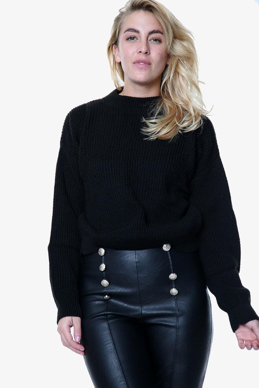 Red Open Knit Turtle Neck Jumper
