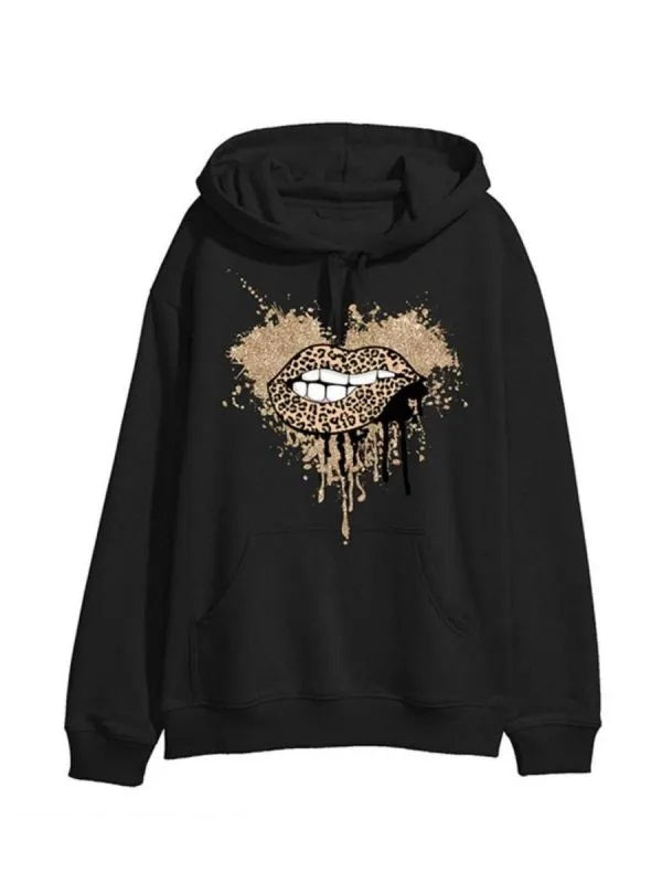 Glitter Leopard Lip Graphic Print Hoodie: