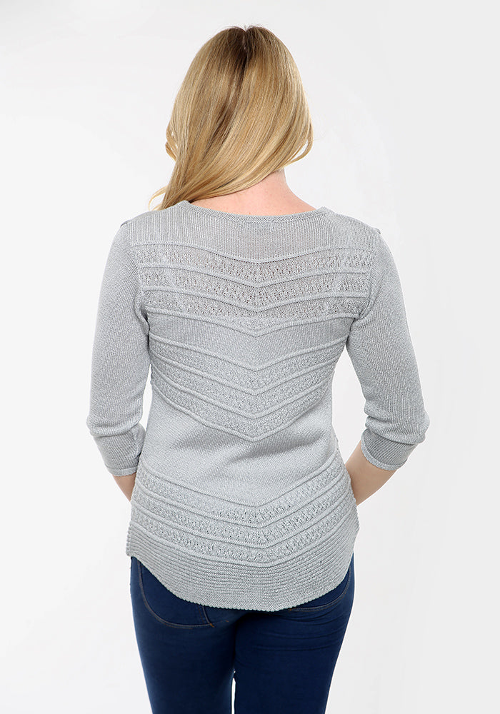 White V Shape Filigree Knitted Jumper