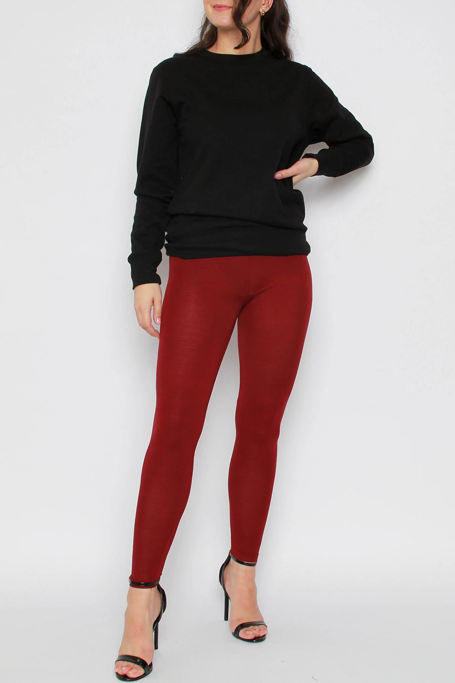 Wine Plain Viscose Leggings