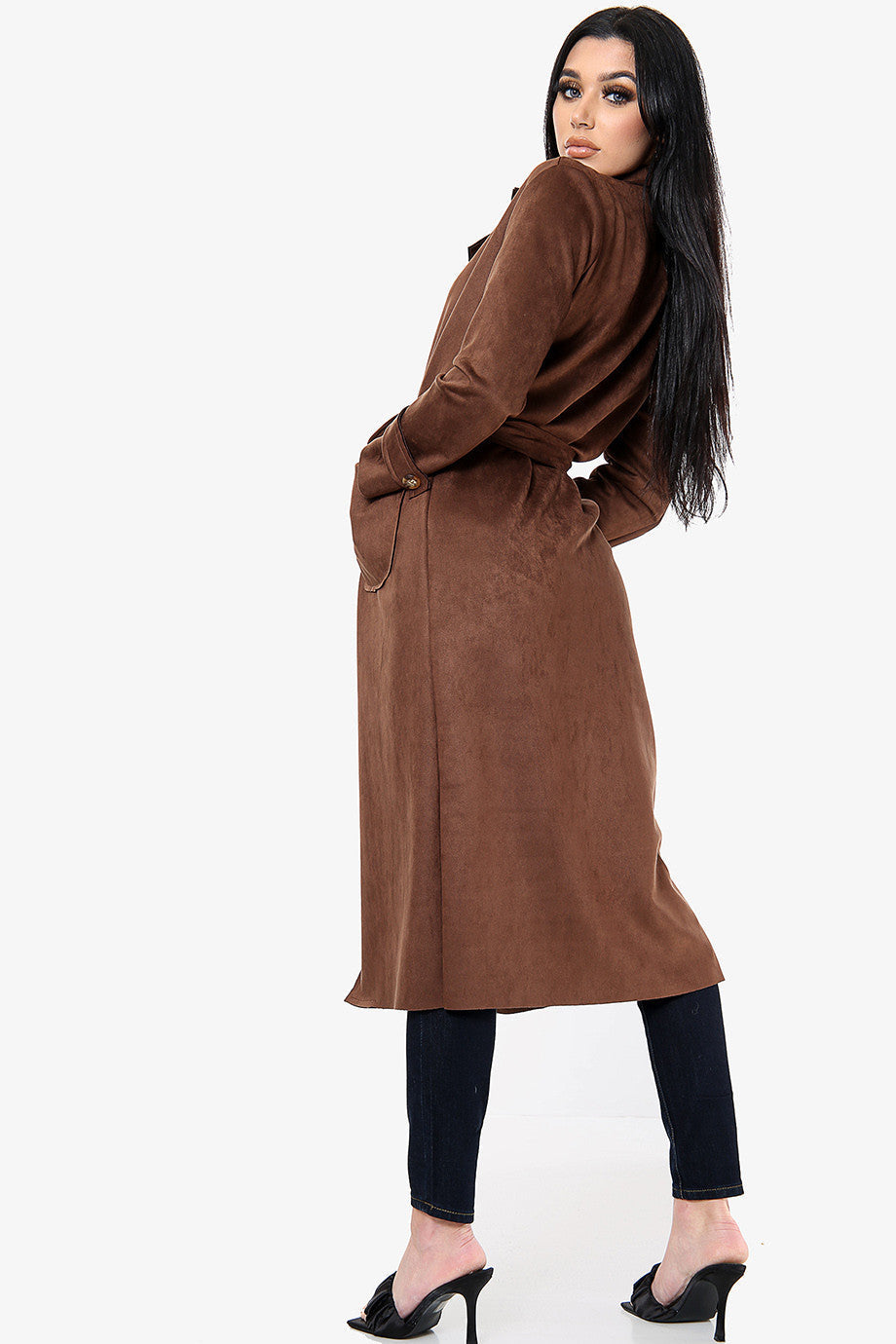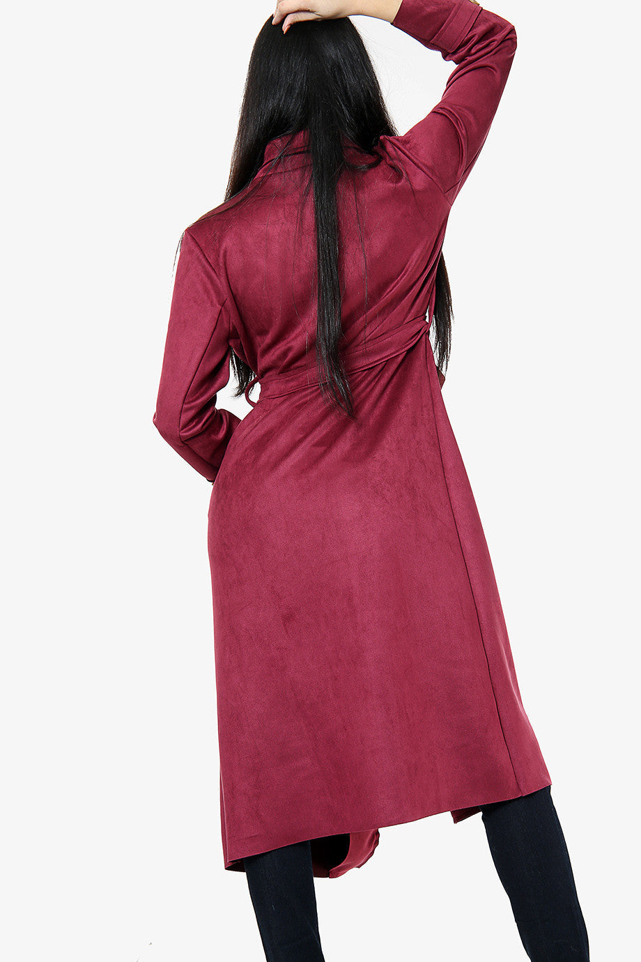 • Load image into Gallery viewer, Wine Suedette Longline Belted Jacket